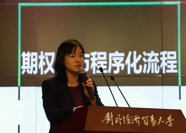 开幕式上,余湄教授汇报了本次比赛的基本情况,本次大赛旨在普及期权及衍生品的相关知识、推动我国的金融衍生品教学平台的提升,培养服务于国家金融市场建设的人才,充分体现教育强国、人才强国的教育理念。中信建投证券衍生品交易部行政负责人戴波介绍了资本市场在金融资产资源配置中的决定性作用、场内期权合约以及做市商制度的重要性等内容,希望对期权做市感兴趣、有热情的同学能够投身到业界,共同推进中国金融创新的发展。嘉实基金指数投资部负责人刘珈吟介绍了ETF期权对市场深度和流动性的支持作用,并提到了嘉实基金两只跨市场ETF产品的特点,强调了做市商对产品流动性和交易成本的影响,鼓励学生通过模拟交易大赛积累实践经验,激发创新意识,为中国金融市场发展贡献力量。