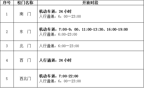 为切实做好暑期安全管理服务工作,保卫处在24小时值班基础上,安排各相关科室做好暑假期间业务办理工作。同时结合当前大型工程施工情况,经讨论,决定暑假期间各校门机动车道、人行通道开放时段维持不变。具体安排如下: