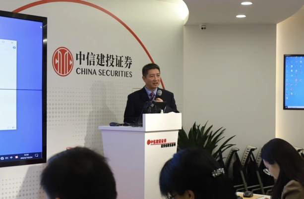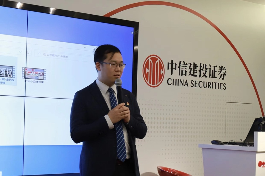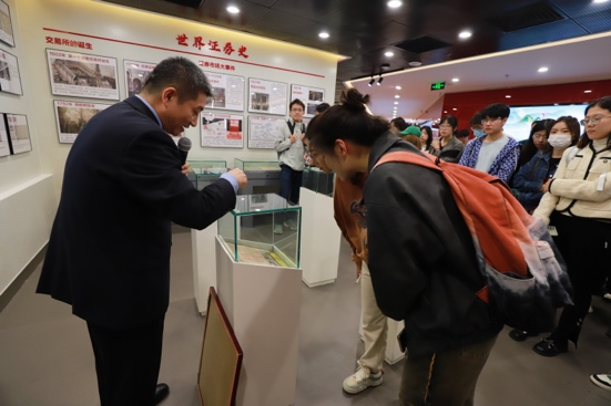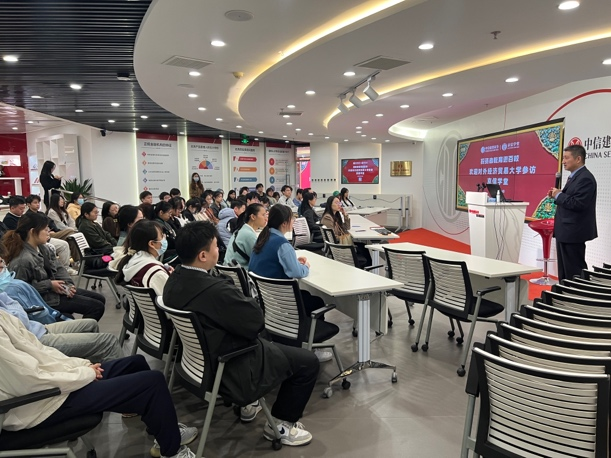 京信学堂李强向来访师生介绍了投资者教育工作的意义和中信建投证券投教基地的相关情况,并通过播放宣传片展示中信建投证券的发展历程和证券公司业务。