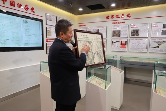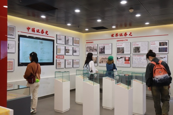 最后,李强带领大家参观京信学堂的各个展区,介绍世界证券市场和我国证券市场发展的相关情况,重点讲述了从清末到新中国初期我国证券市场早期发展的艰辛历程和代表性事件,以及改革开放后我国证券市场各个发展阶段所取得的巨大成就。其中展区的第一部分是中信建投证券投教基地-京信学堂历史展区,通过展旗、展墙图片、展柜里的票样为大家介绍有关世界和中国证券历史发展相关知识。讲述我国证券市场从清朝末年到新中国成立初期我国证券市场在战乱和社会动荡中艰难地发展;展区第二部分介绍了进入1980年代后,借助改革开放的春风,我国证券市场快速发展所取得的巨大成果;展区第三部分是投资品种介绍,该展区主要展示了常见投资品种的产品类型以及风险等级。