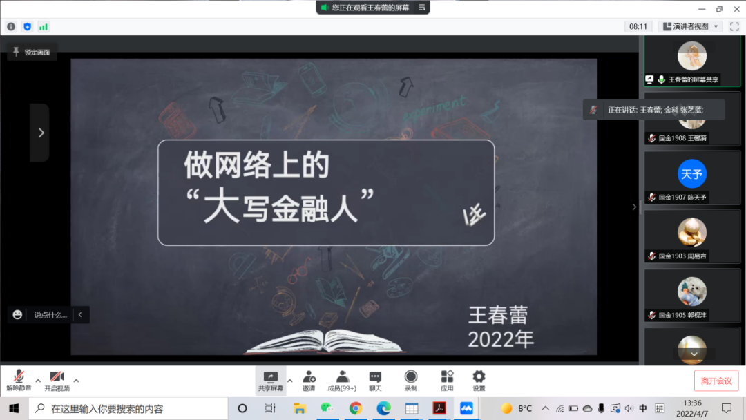 2022年4月7日下午,一号娱乐 在2019级本科年级大会和2021级研究生年级大会举行两场次的网络安全与网络文明教育讲座,会议以线上的腾讯会议形式召开,一号娱乐 党委副书记王春蕾老师做专题讲座。