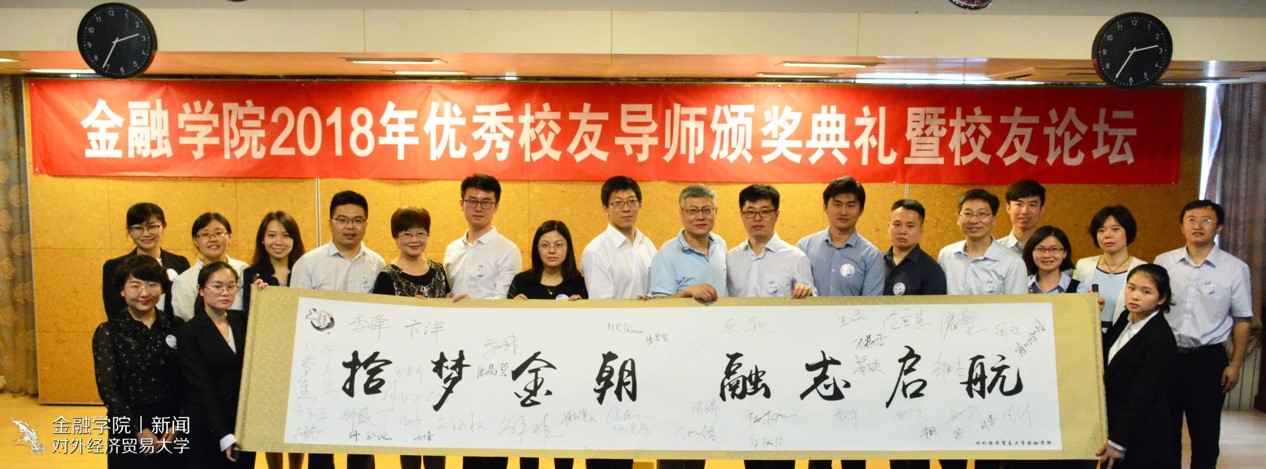 在校友导师工作方面起步早、坚持好、受益面广、收效好,一直走在全校前列,希望广大校友以校友导师制为载体,将贸大精神发扬光大。