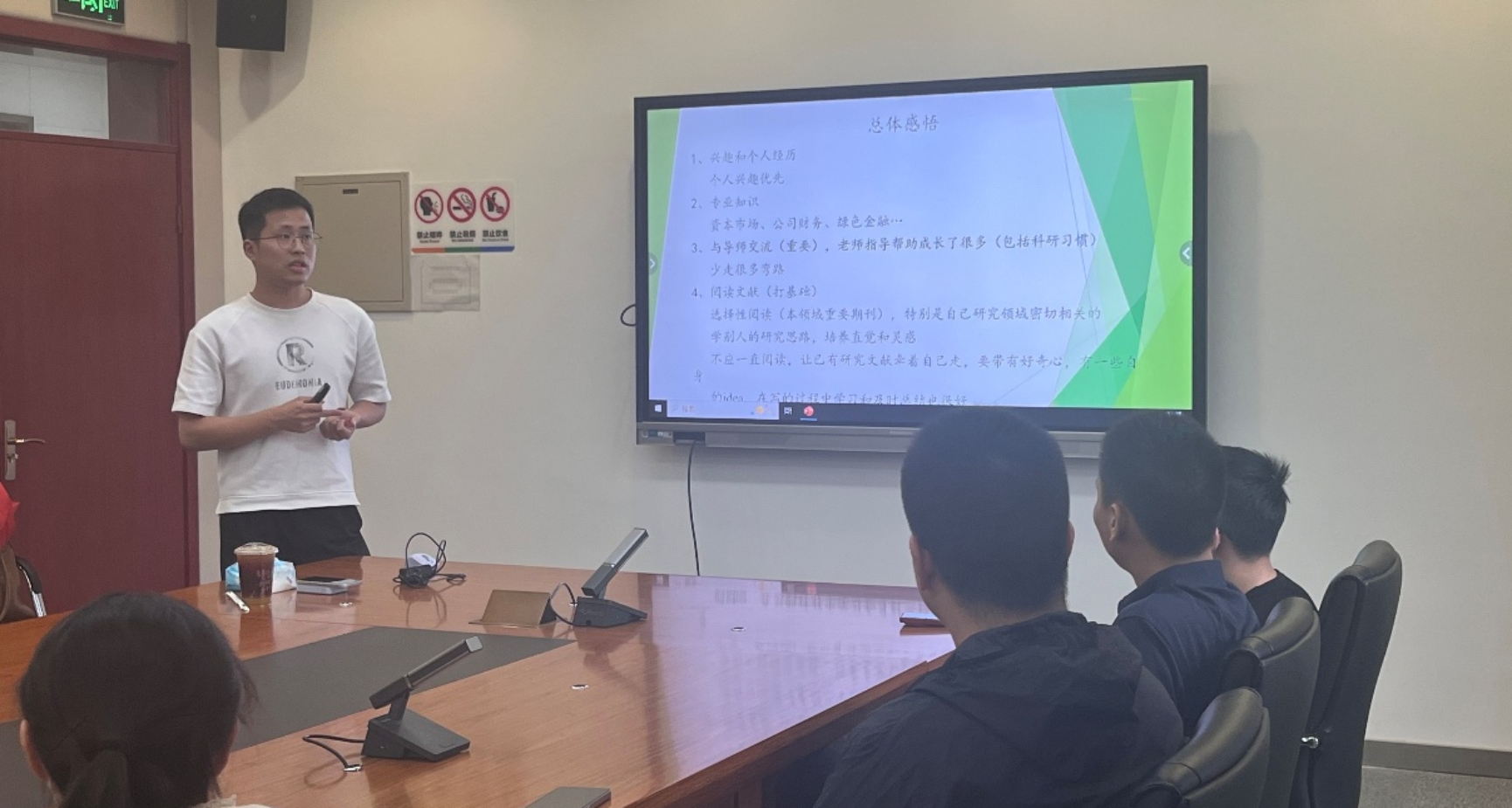张铮:在“薪火相传・研路共航”新老生经验分享交流会上,有幸聆听王晨宇和叶涛两位优秀学长关于论文发表、博士生涯规划、企业及教职求职等方面的经验分享,收获颇丰。王晨宇学长首先围绕博士期间的学习、生活与科研,分享了诸多实用建议,并着重聚焦求职环节,毫无保留地传授了宝贵经验。随后,叶涛师兄聚焦论文写作、出国留学经历及博士期间论文发表的时间规划展开分享。在出国留学方面,他结合自身经历,从院校导师联系、英语考试准备等环节,提供了极具参考价值的经验;而关于博士期间的论文发表,他细致规划了不同研究阶段的任务重点,让我受益良多。