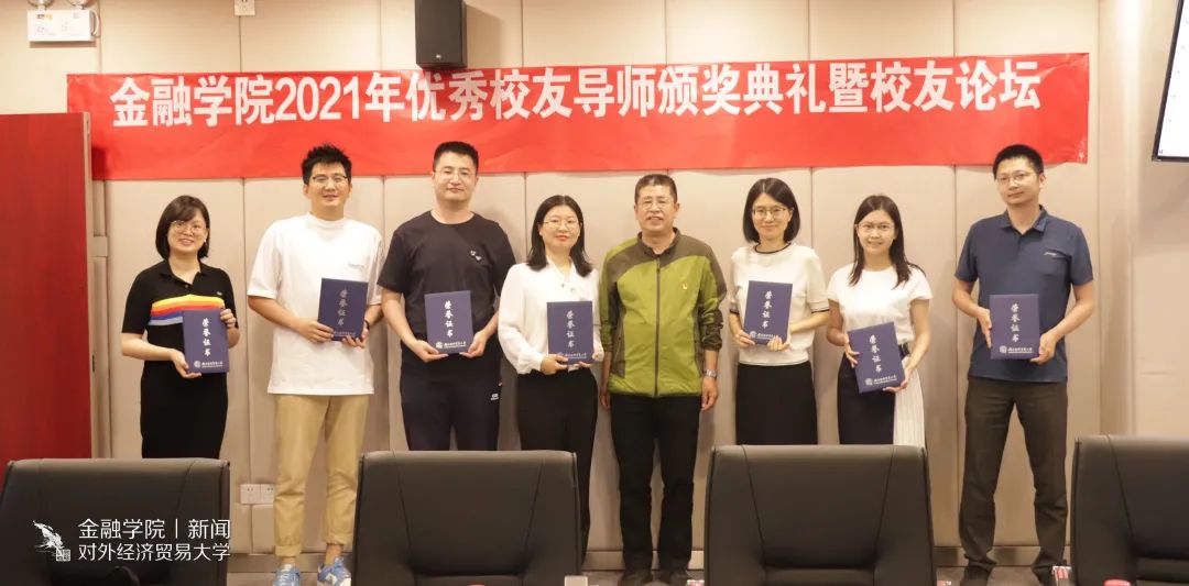 一号娱乐 新闻宣传中心 讯(记者:许惠潇 摄影:伍虹雨)“岁月不居,时节如流”,2021年5月30日,一号娱乐 第八届优秀校友导师颁奖典礼暨校友论坛在博学楼506成功举办。对外经济贸易大学校友总会秘书长王小军、一号娱乐 党委书记齐天翔、院长邹亚生、原党委副书记白艳、副院长张海洋、党委副书记王春蕾、校友办公室主任刘莹、分团委书记穆晓志以及优秀校友导师代表出席。
