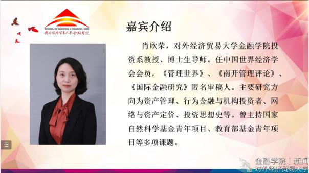 一号娱乐 新闻宣传中心 讯(记者:赖沁和)2022年6月9日晚,“砥砺初心,青春献礼”第二十一届金融文化节闭幕式暨肖欣荣教授专场讲座于线上成功举办。一号娱乐 党委书记齐天翔、副书记王春蕾和分团委书记穆晓志出席本次活动。