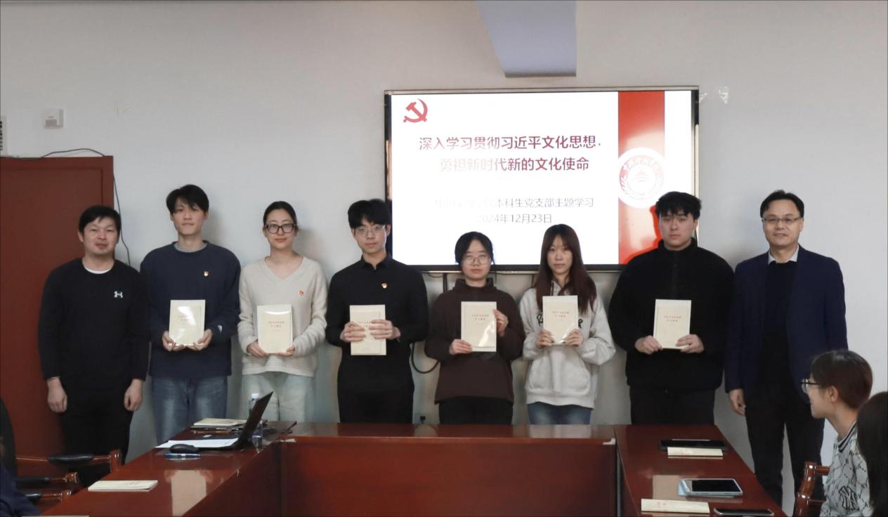 【文:汤璨希;图:郭禹宏】2024年12月23日下午,为深入学习贯彻习近平文化思想,一号娱乐 本科生党支部于博学楼925开展集体学习。学校党委副书记张小锋、一号娱乐 党委书记曹小勇及本科生党员参加会议。一号娱乐 分团委书记、本科第一党支部副书记穆晓志主持会议。