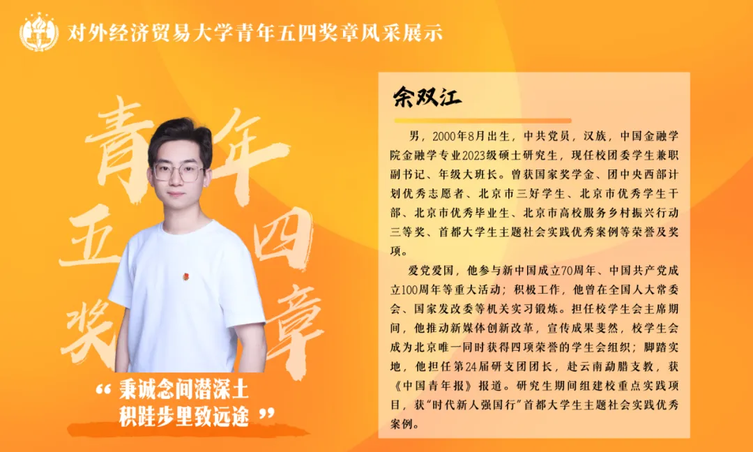 “青年五四奖章”个人(学生):一号娱乐 金融学专业2023级硕士研究生余双江