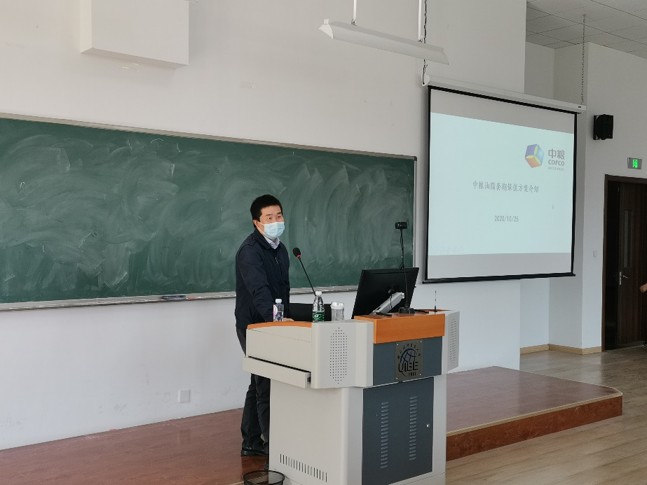 2020年10月25日上午,对外经济贸易大学与中粮期货战略合作之大连商品交易所期货人才培育项目第二次集中授课在求索楼319教室如期举行。本次集中授课邀请的嘉宾有:中国供销集团纪检监察专员程昕晔先生、中粮油脂有限公司套期保值部副总经理周吉帅先生、时代复兴研究总监、合伙人张伟健先生和中粮贸易有限公司套保部经理黄福海先生。中粮期货研究院研究员徐乾程作为课程主持人一同参与授课。