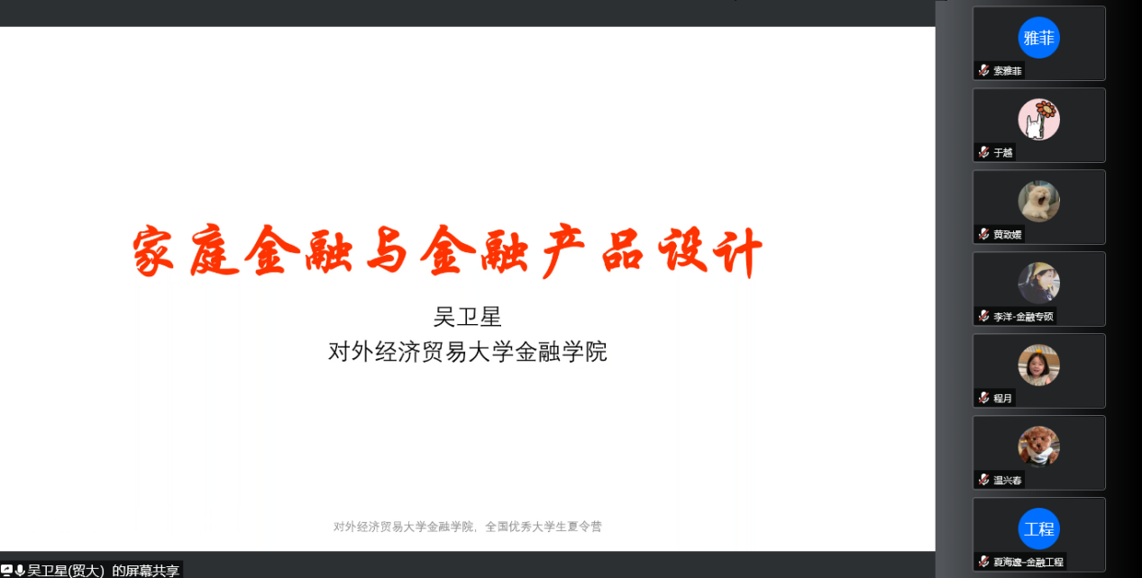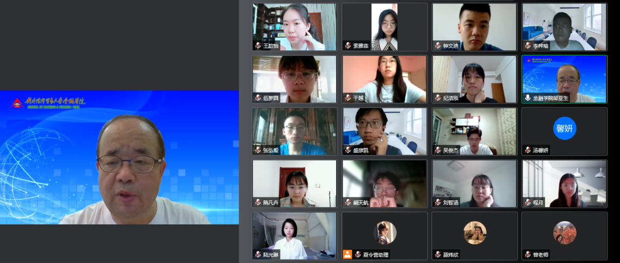 在第一天最后一项学生座谈会活动中,一号娱乐 优秀学生代表肖静、李维升、陈晓仪和樊成韵四位同学先后分享了在贸大一号娱乐 求学的学习生活经历,虽然是线上座谈,但夏令营的同学们热情很高,积极参与讨论和交流。