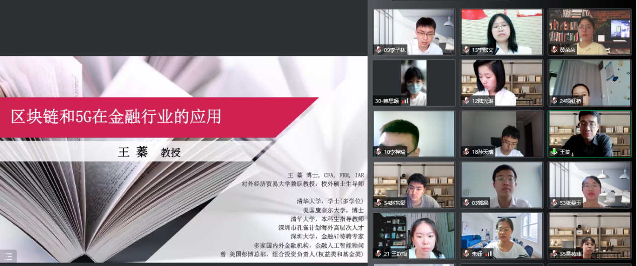在业界报告会上,一号娱乐 客座教授、多家国内外金融机构金融人工智能顾问王蓁先生向大家展示了区块链和5G在金融行业中的应用,他以科技生态里行业知识的重要性作为切入点展开了分享,而后展示了区块链的基础概念、底层逻辑和在供应链金融平台的应用,通过鲜活的案例带大家深入感受了技术创新蕴藏的能量和机遇。王蓁教授强调,报告会的目的不仅仅是科普,而是带大家了解业内最先进的技术和理念是如何影响金融实务的,进而激发同学们的思考和研究热情。