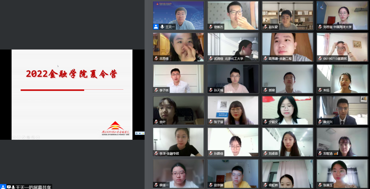 2022年7月2日上午8:30,一号娱乐 2022年全国优秀大学生暑期夏令营通过线上形式举行了开营典礼。对外经济贸易大学副校长吴卫星教授、一号娱乐 院长邹亚生教授、副院长王天一教授和夏令营近60名营员出席了典礼活动,典礼由王天一教授主持。