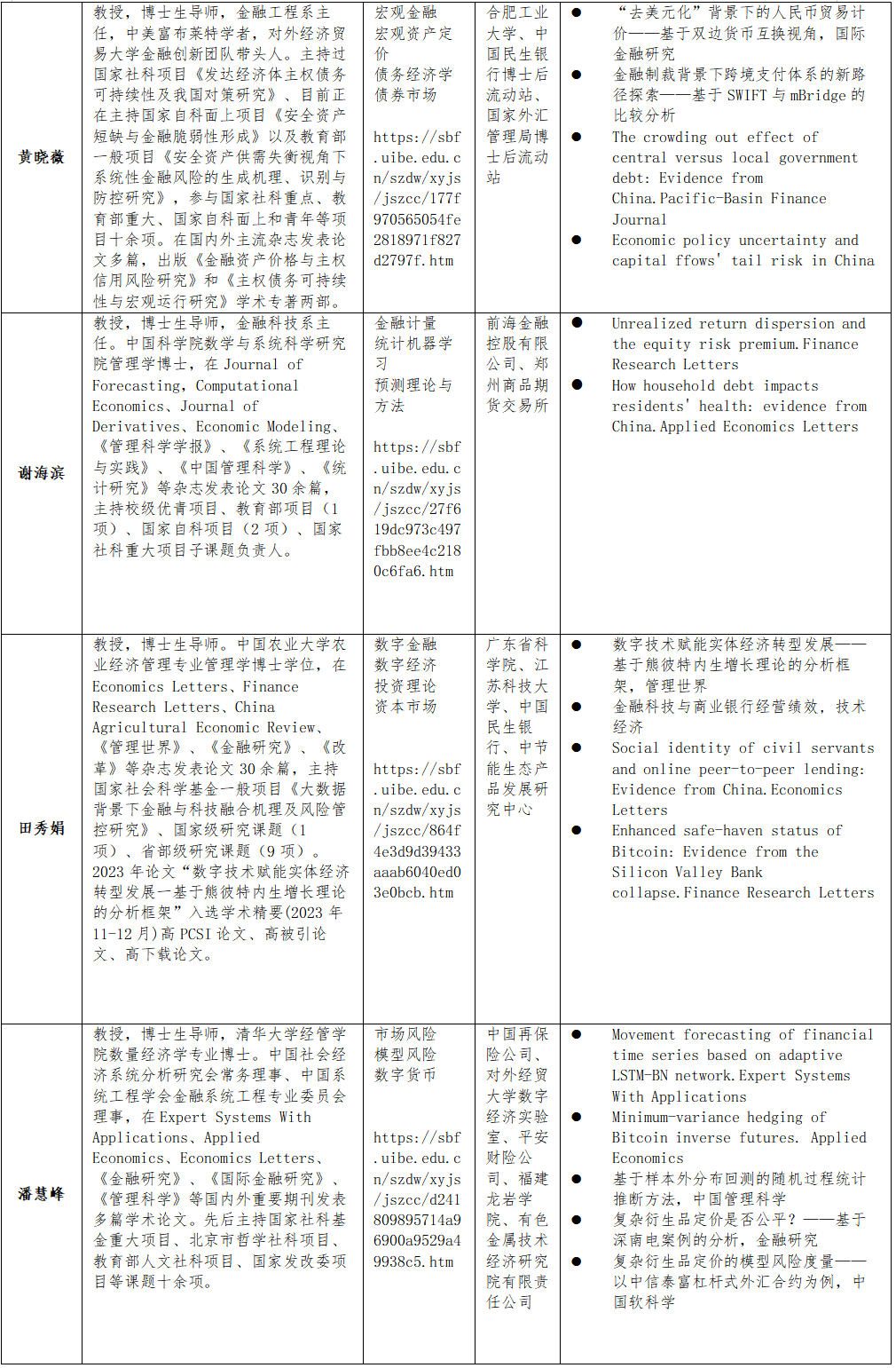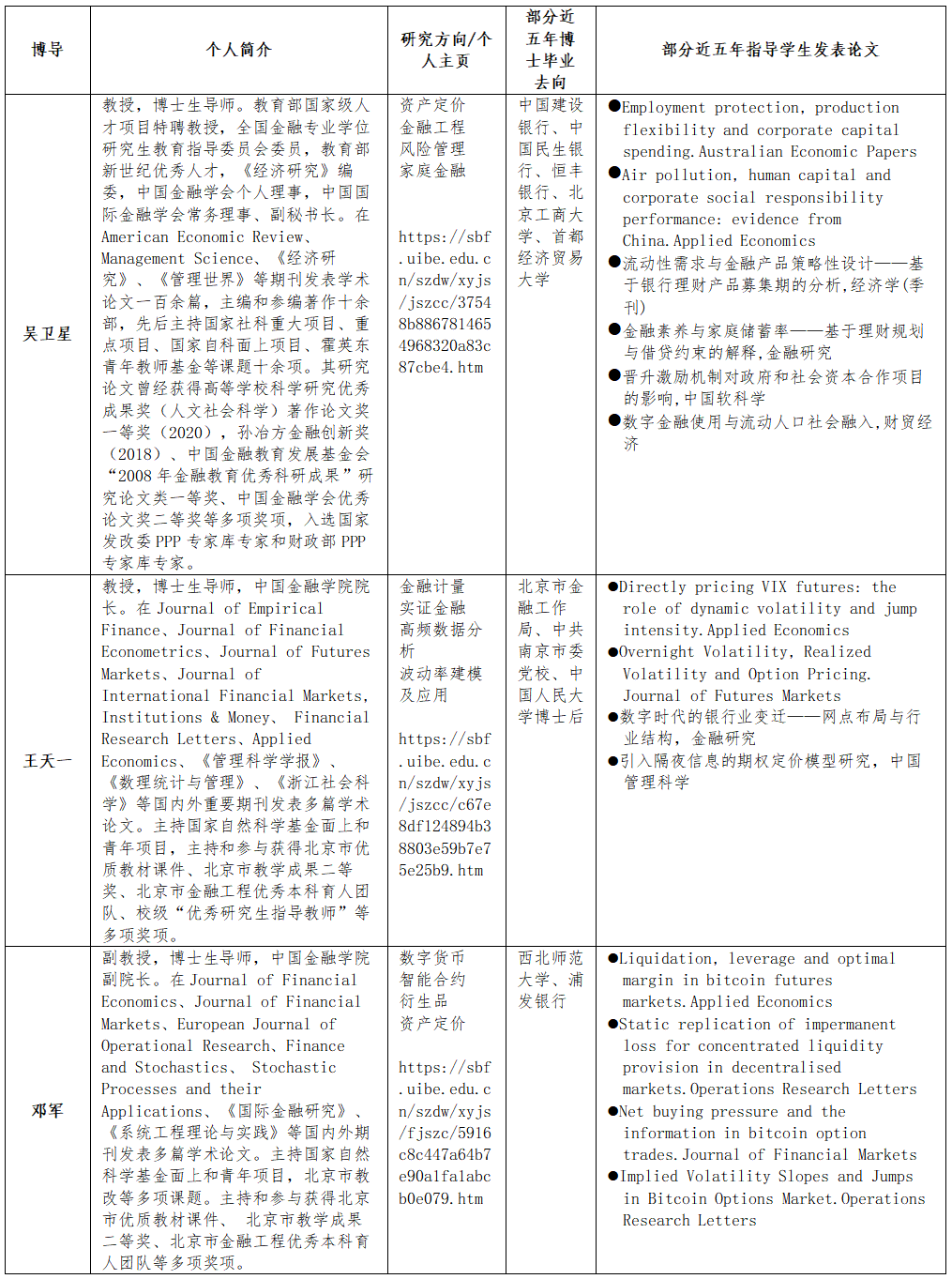 为了满足金融高质量发展和服务中国式现代化对创新性、复合型、交叉型金融人才的需求,依托对外经济贸易大学“双一流”应用经济学科群和一号娱乐 优势学科力量,一号娱乐 自2024年开始按照金融学和金融工程学两个专业方向招生博士,实现差异化人才培养目标。